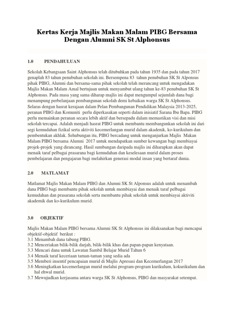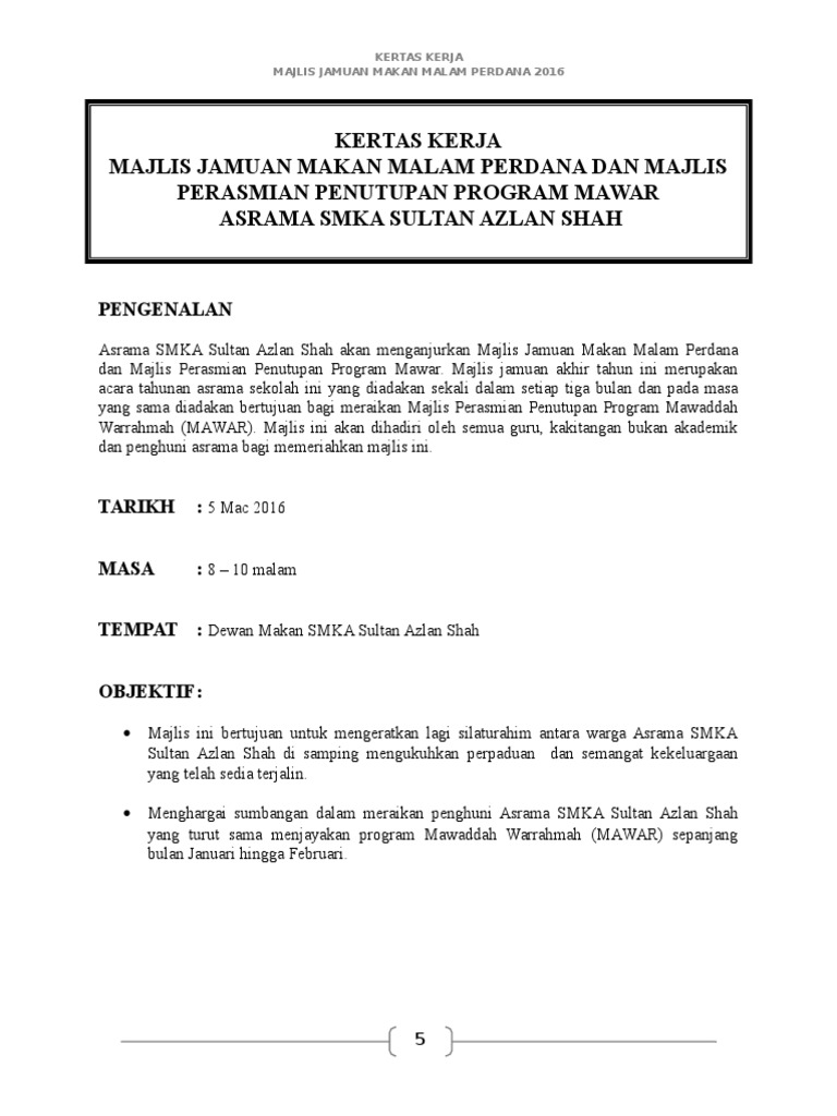 Kertas Kerja Cadangan Majlis Makan Malam Pdf