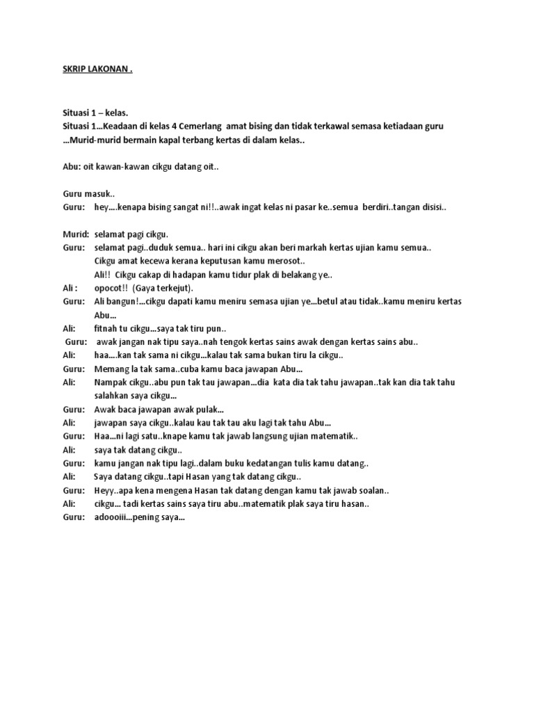Contoh Skrip Drama Yang Dimainkan Oleh 6 Oran1